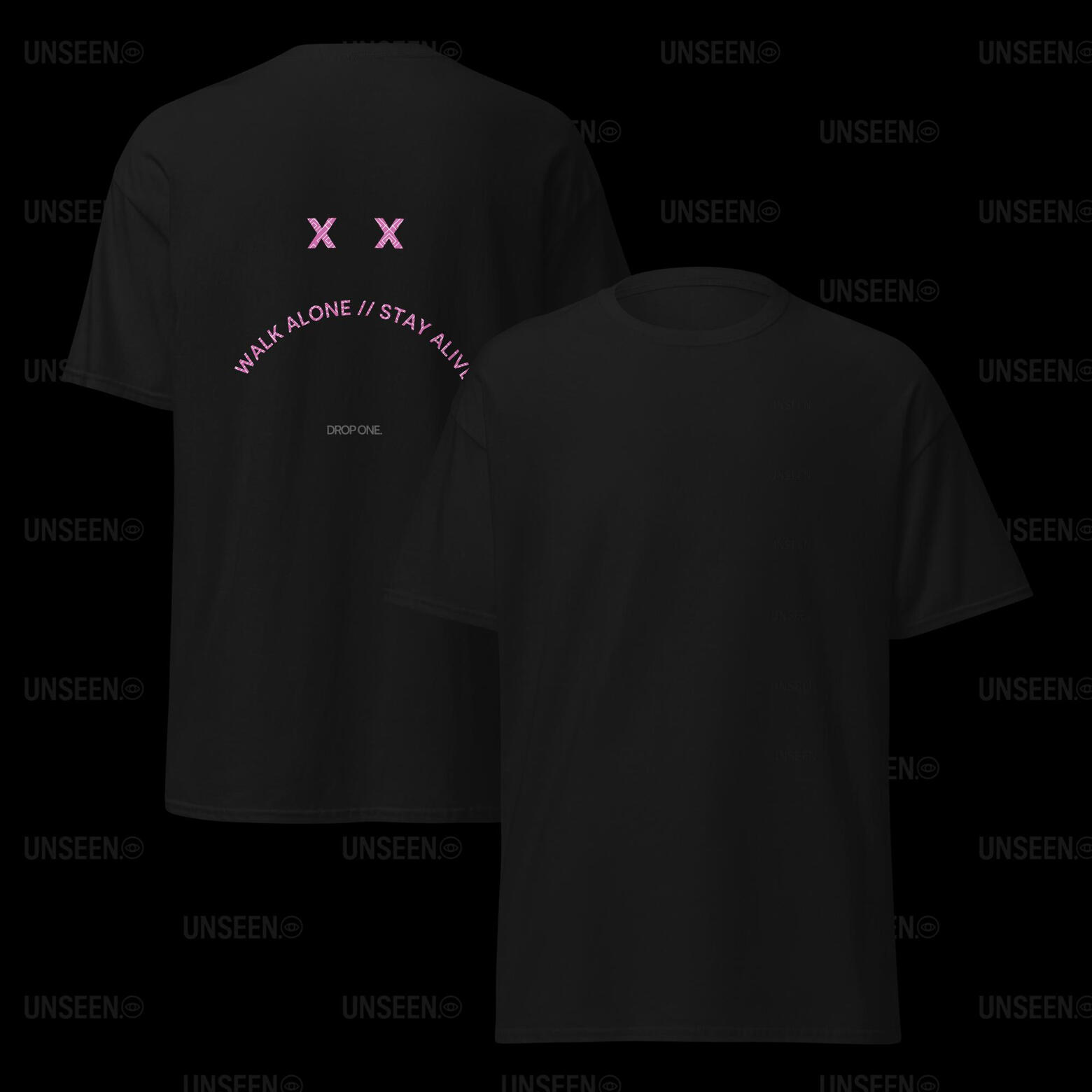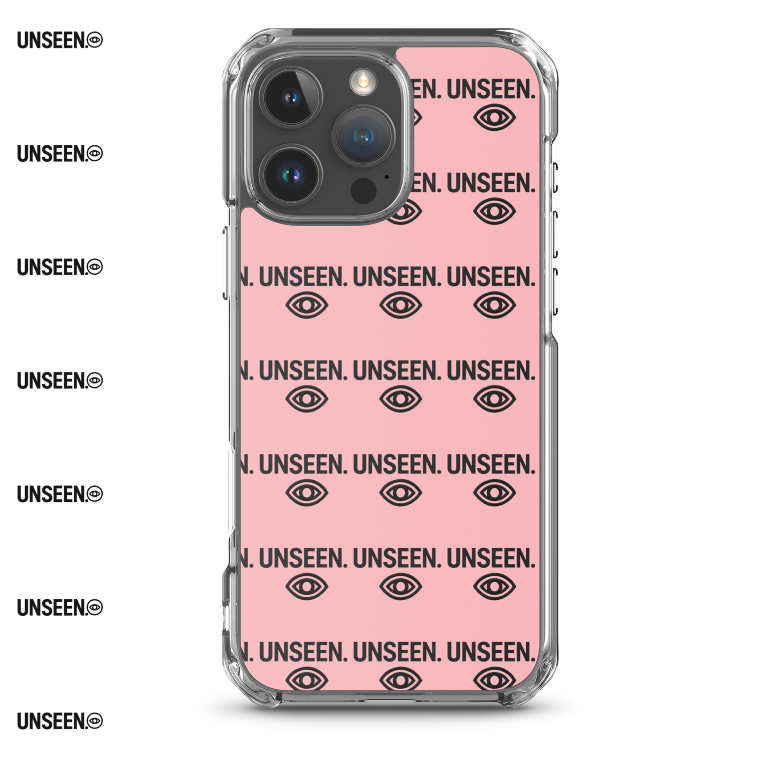 A muted pink backdrop stamped with the UNSEEN mantra and watchful eyes—reminding you that even when you feel invisible, you're never alone.Stay protected. Stay UNSEEN.Only 50 made. No restocks.